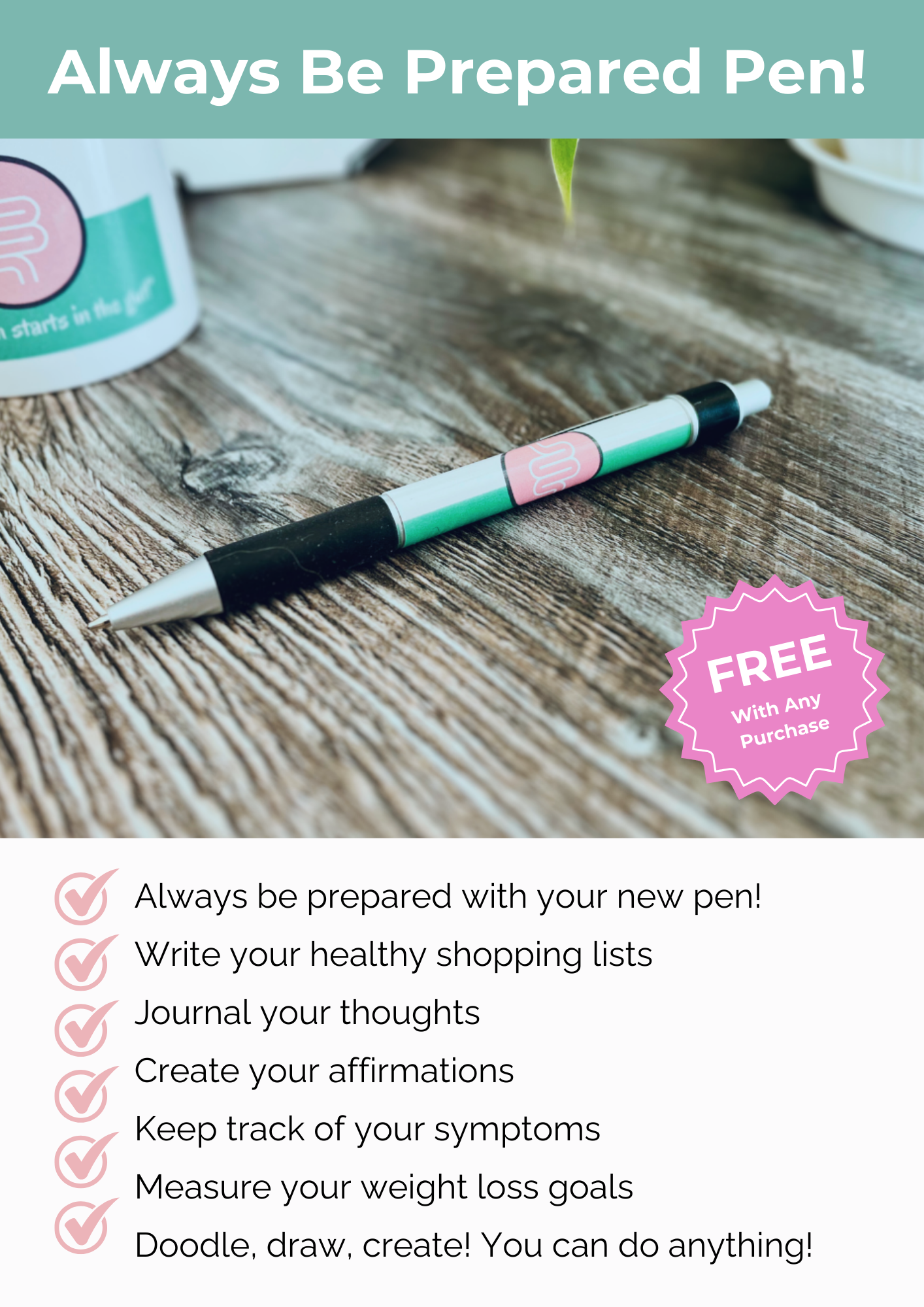 As The IBS Recovery Expert, I know the importance of reprogramming your subconscious mind for success. That’s why I’ve created my signature Reminder Mug, Positive Mindset Pad and your Be Prepared Pen! Coming into regular contact with these essential every day items will help remind you to always put yourself, your health and your gut first.