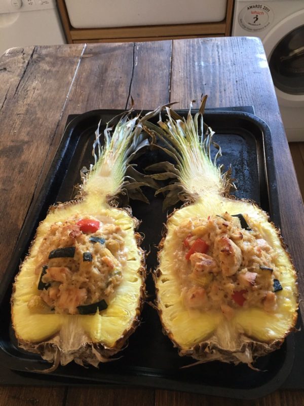 Baked Pineapple is a complete Showstopper. So tasty, full of goodness and a really natural sweet and salty flavour. You can follow this recipe and have a meal for two people, or get mini pineapples and adjust the measurements accordingly to make these for a BBQ or a diner party. One thing is for sure, when you have tried this once you will already be looking forward to the next time...