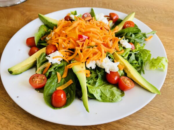 Avocado is a known superfood for gut health, actively sweeping through the digestive tract and clearing the way through. Avocados contain vitamin E and healthy fats which soothe and heal as they are broken down. They are also very filling and tasty. Whilst carrots are a great source of vitamin A which helps with bone and eye health as well as providing antioxidants which help to repair damage caused by every day living.
