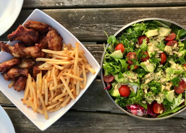 The fries are home made and air fried so as healthy as you can get for a chip. And the chicken wings can be made using home made sauce or a bought sauce if you prefer.