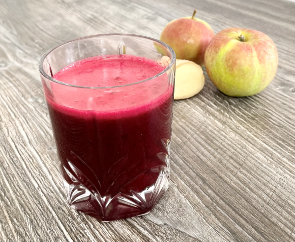 This recipe is great for so many reasons. Firstly, it will strengthen your blood as the powerful vitamin C and iron in the beet juice will help clear any blockages and promote safe transportation of other nutrients around your body. The ginger always works for me as a bowel mover, so I add in a big chunk. Great if you are struggling with IBSC. It also soothes the gut and provides a really nice kick to the juice.