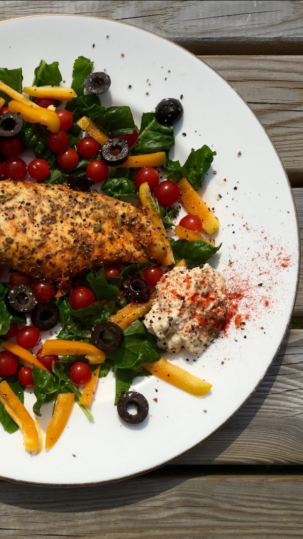 My all time favourite. This recipe is something I enjoy on a regular basis with the salad alternating as to what I have in the fridge. I also change and messagings around with the spices depending on my mood. There is no right or wrong, just be free and have fun with it.