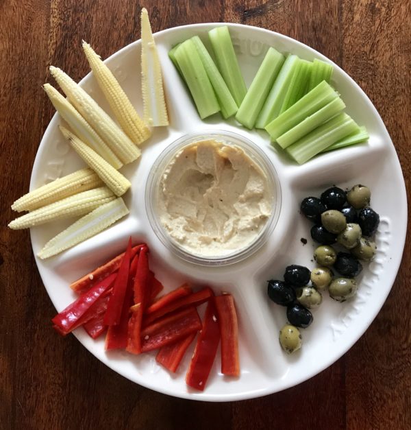 2. place everything in sections on a plate with humous in the middle, enjoy!