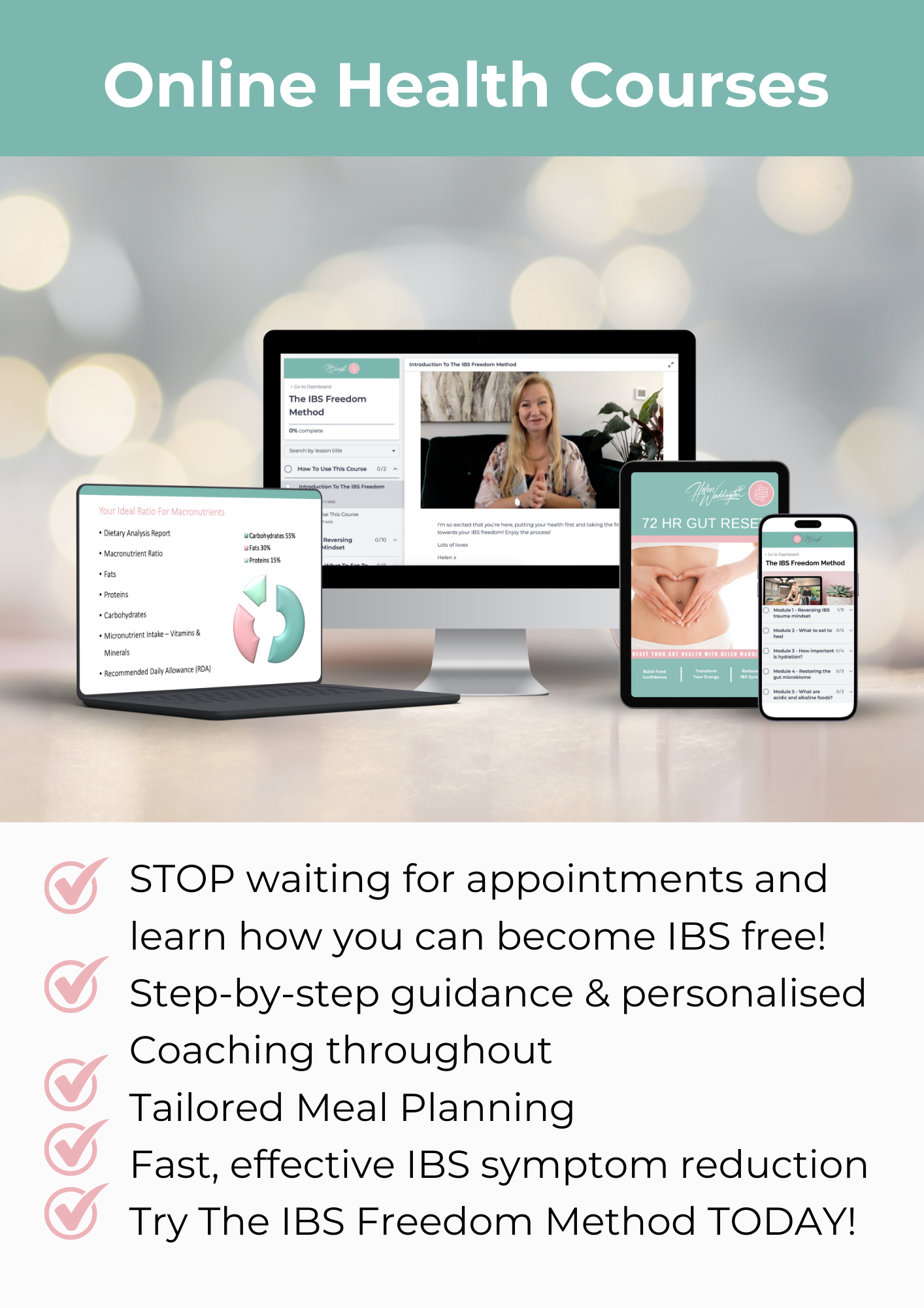Check out my carefully curated and thoroughly researched health and wellness eBooks, essential Kitchen Gadgets, online Courses and tried and tested Dietary Supplements. Dive in and find the perfect tools to support your gut healthy lifestyle naturally and effectively!